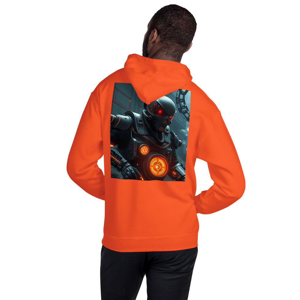 Turn up the voltage with the Ion Charge Dystopian Hoodie. Designed for those who thrive on the edge, this collection channels high-energy, futuristic vibes with a striking orange and black palette. Each piece is a nod to dystopian city lights and digital rebellion—an electric statement for those who don’t just follow trends, but spark their own.